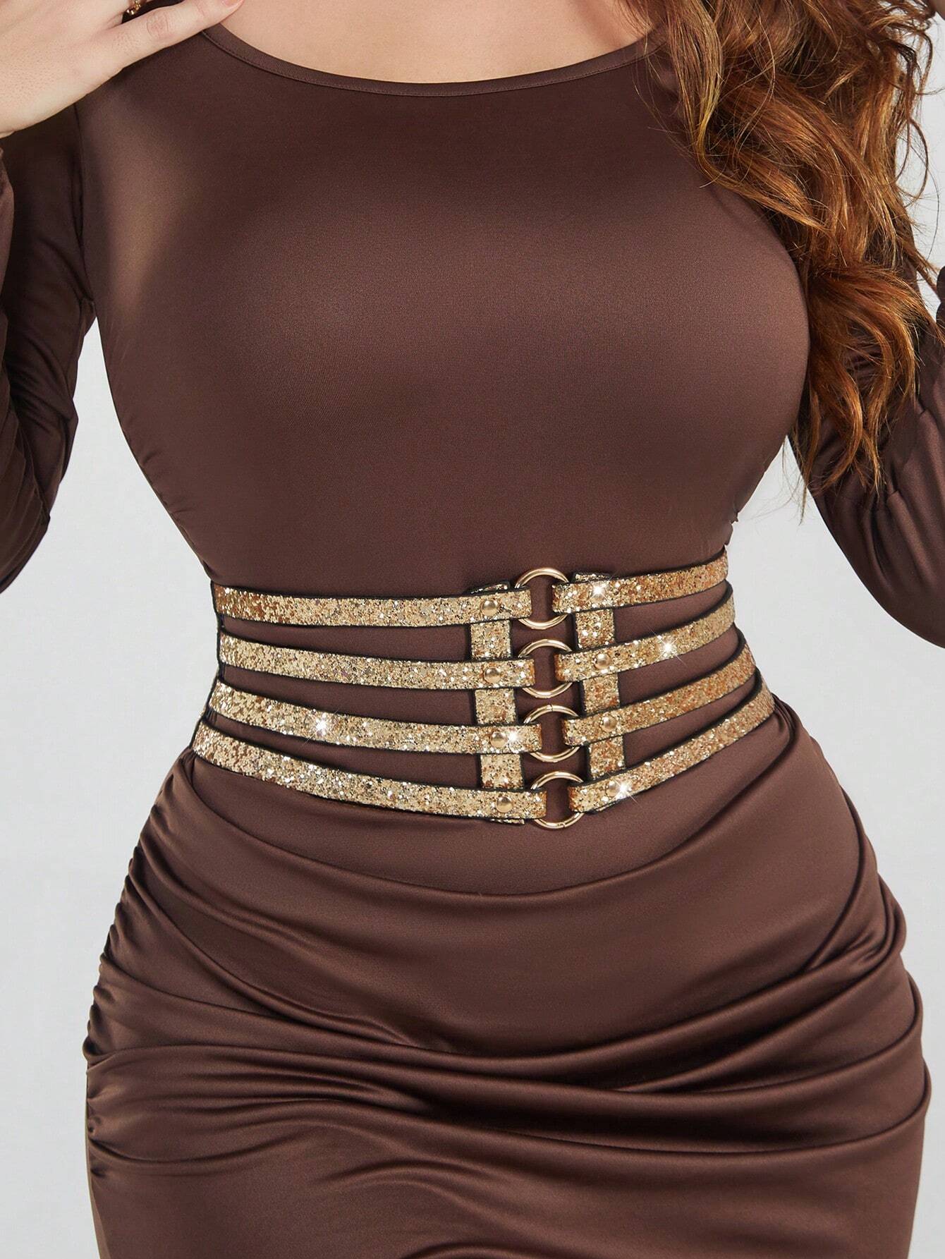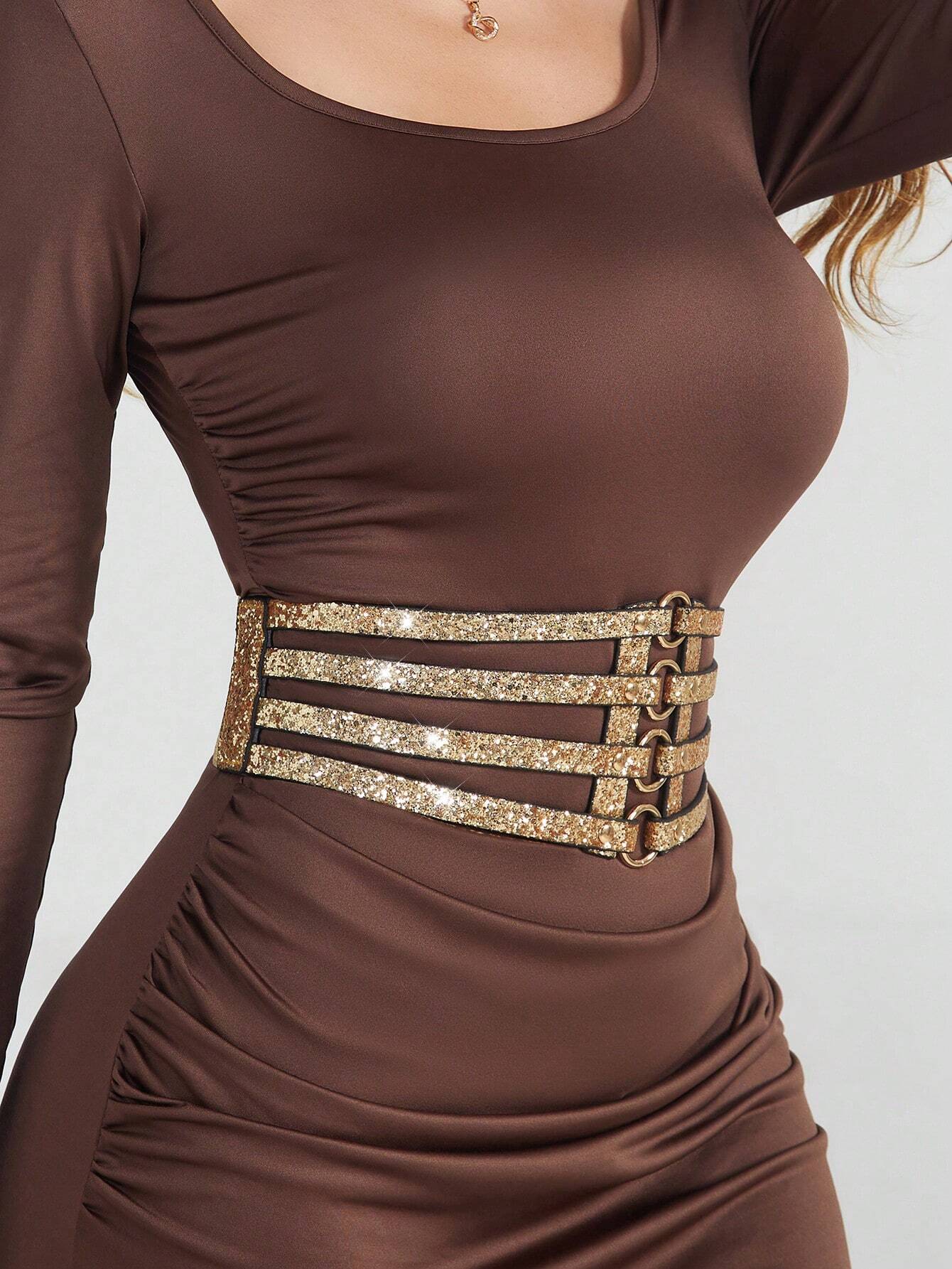 Hollow Out Shiny Sequin Waist Belt, 4-Rows Elastic BY SHEIN